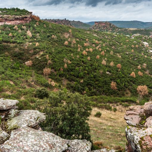 La altitud en este punto es de 1.070 m snm, es el punto de menor altitud de la ruta, ubicado en mitad del recorrido, y por tanto el apropiado para realizar un pequeño descanso o reposición de fuerzas. La ruta continúa volviendo sobre el mismo camino, deshaciendo el tramo de arroyo unos 750 m hasta encontrar la bifurcación señalizada del barranco de valdelacueva.