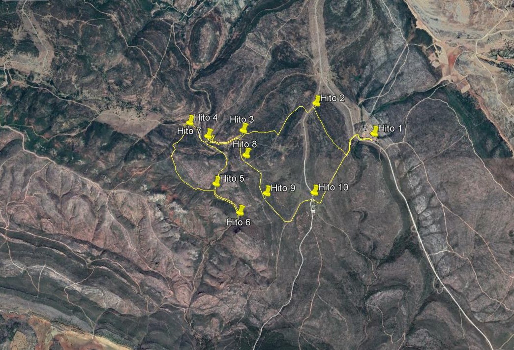 Tiene una longitud de 13 km con un desnivel acumulado de 315 m y su dificultad es media-baja. La primara mitad es en descenso, y la segunda mitad es algo más dura, alternando subidas y bajadas, con dos tramos, de 1 y 1,5 km de intenso ascenso, para poner a punto las piernas y la forma física. Existe la posibilidad de reducir la distancia a 7 km mediante un sub-circuito, conectando el punto 3 con el punto 9.